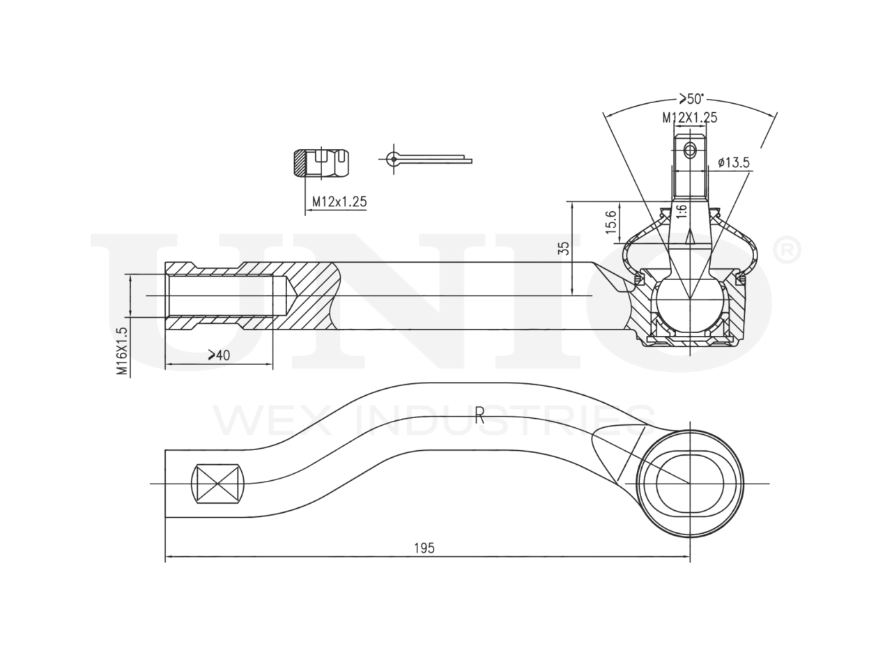 Артикул товара - SSP-10006, Парные номера артикулов:SSP-10005, Сторона установки:Передний мост справа, Внутренний диаметр [мм]:13.5, Длина [мм]:195, Присоединительная винтовая резьба:M12x1,25, Размер конуса [мм]:13.5, EAN:4657808260646, EAN:4657808260646, Тип упаковки:коробка, Длина упаковки [мм]:250, Ширина упаковки [мм]:90, Высота упаковки [мм]:60, Вес нетто [кг]:0,72, Вес брутто [кг]:0,78