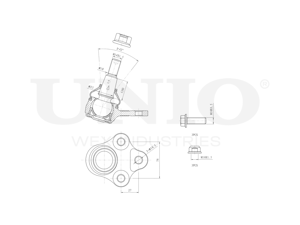 Артикул товара - SSP-20116, Сторона установки:Передняя ось, слева/справа,Снизу, Внутренний диаметр [мм]:18, Тип резьбы:Внешняя резьба, Размер резьбы:M14x1,5, Присоединительная винтовая резьба:M14x1,5, Размер конуса [мм]:18, EAN:4657808266846, EAN:4657808266846, Тип упаковки:коробка, Длина упаковки [мм]:130, Ширина упаковки [мм]:110, Высота упаковки [мм]:80, Вес нетто [кг]:0,73, Вес брутто [кг]:0,78