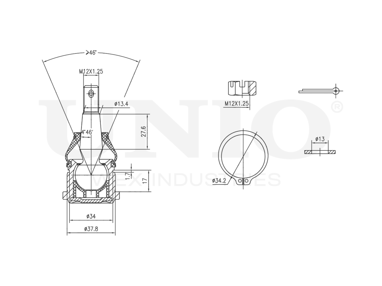 Артикул товара - SSP-20120, Сторона установки:Передняя ось, слева/справа,Снизу, Внутренний диаметр [мм]:13.4, Диаметр шарнира [мм]:37.8, Тип резьбы:Внешняя резьба, Размер резьбы:M12x1,25, Присоединительная винтовая резьба:M12x1,25, Размер конуса [мм]:13.4, EAN:4657808267379, EAN:4657808267379, Тип упаковки:коробка, Длина упаковки [мм]:100, Ширина упаковки [мм]:100, Высота упаковки [мм]:80, Вес нетто [кг]:0,33, Вес брутто [кг]:0,37