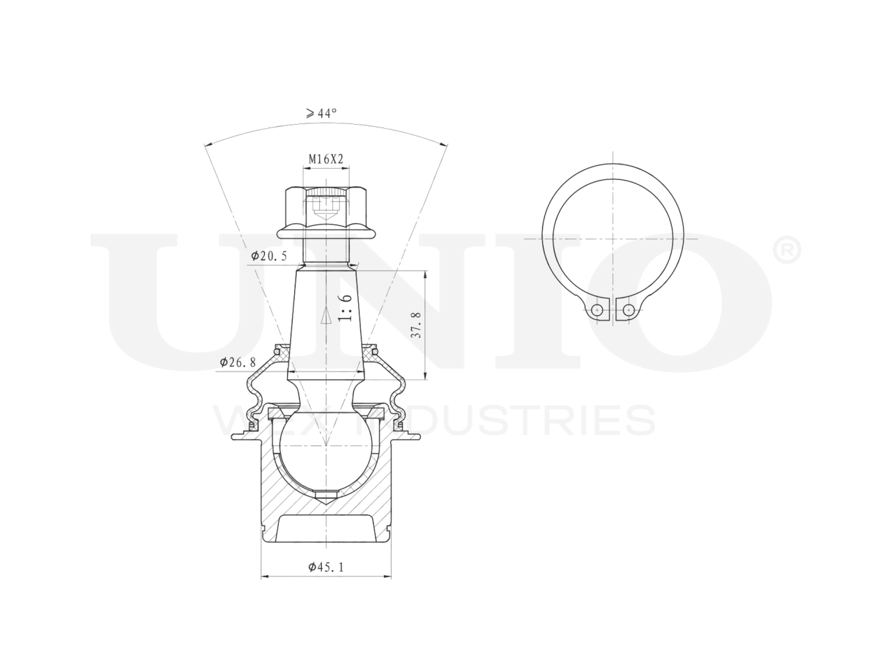 Артикул товара - SSP-20131, Сторона установки:Передняя ось, слева/справа,Снизу, Внутренний диаметр 1 [мм]:20.5, Внутренний диаметр 2 [мм]:26.8, Диаметр шарнира [мм]:45.1, Присоединительная винтовая резьба:M16x2, Размер конуса [мм]:20.5, EAN:4657808268055, EAN:4657808268055, Тип упаковки:коробка, Длина упаковки [мм]:150, Ширина упаковки [мм]:90, Высота упаковки [мм]:70, Вес нетто [кг]:0,75, Вес брутто [кг]:0,79