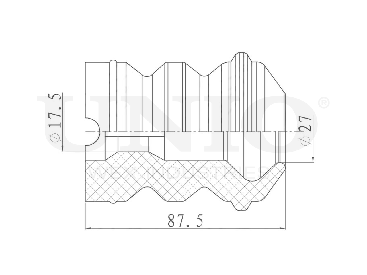 Артикул товара - DUC-40019, Сторона установки:Передний мост, Внутренний диаметр 1 [мм]:17.5, Внутренний диаметр 2 [мм]:27, Высота отбойника [мм]:87.5, EAN:4657815041603, EAN:4657815041603, Тип упаковки:пакет, Длина упаковки [мм]:160, Ширина упаковки [мм]:200, Высота упаковки [мм]:50, Вес нетто [кг]:0,05, Вес брутто [кг]:0,05