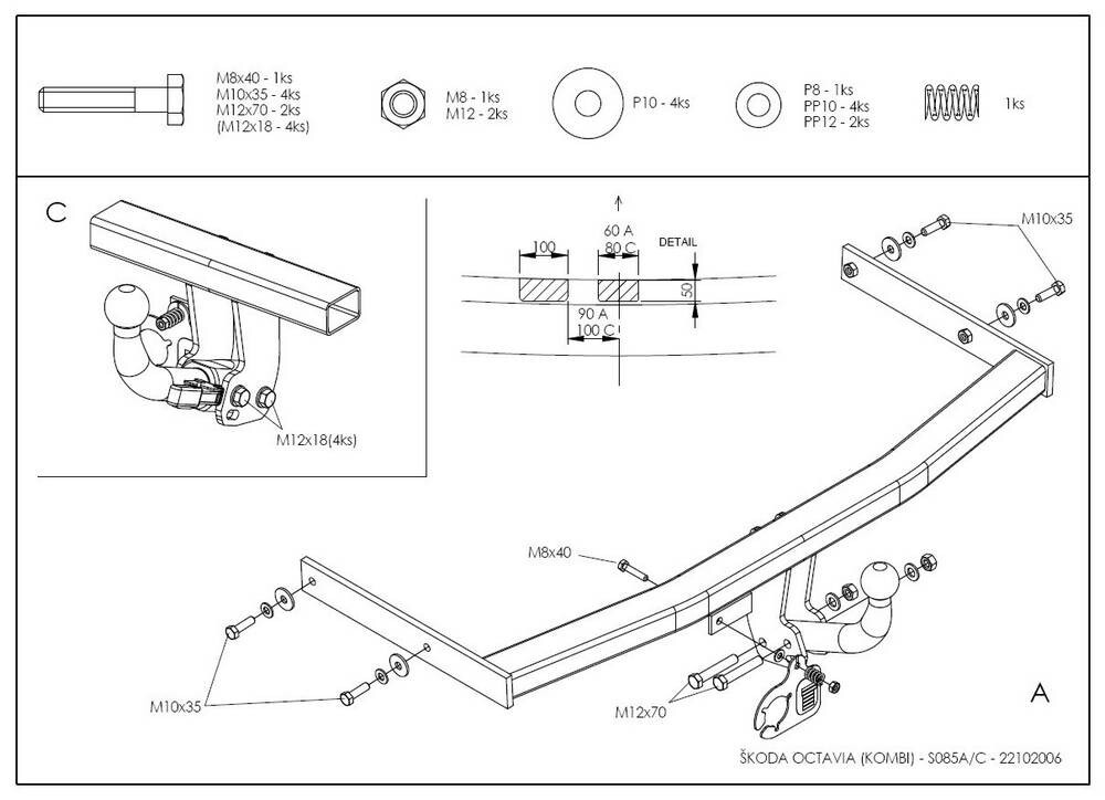 Полностью ОЦИНКОВАННЫЙ фаркоп на Skoda Octavia I седан/универсал 1998-2004, Octavia Tour 2004-2010. Розетка с поворотным механизмом (убирается за бампер). Тип шара: C (горизонтальный съемный). Невидимый вырез бампера. Нагрузки: 1600/75 кг, масса фаркопа 13,6 кг - S085C GALIA