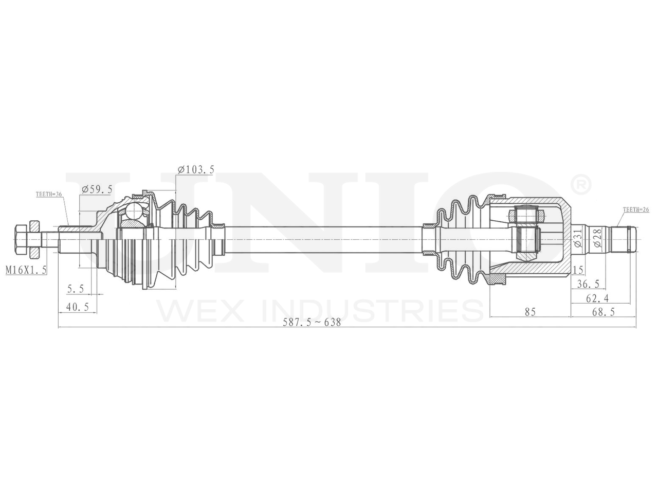 Артикул товара - CVJ-10029, Сторона установки:Передний мост слева, Внешнее зацепление со стороны колеса:36, Внешнее зацепление со стороны дифференциала:26, Внутреннее зубчатое соединение со стороны дифференциала:32, Внутренне зубчатое соединение со стороны колеса:30, Диаметр прокладки [мм]:59.5, Длина [мм]:587.5, Диаметр 2 [мм]:88.5, Диаметр шарнира [мм]:90, Размер резьбы:M16x1,5, EAN:4657814482544, EAN:4657814482544, Тип упаковки:коробка, Длина упаковки [мм]:705, Ширина упаковки [мм]:120, Высота упаковки [мм]:120, Вес нетто [кг]:6,21, Вес брутто [кг]:6,95
