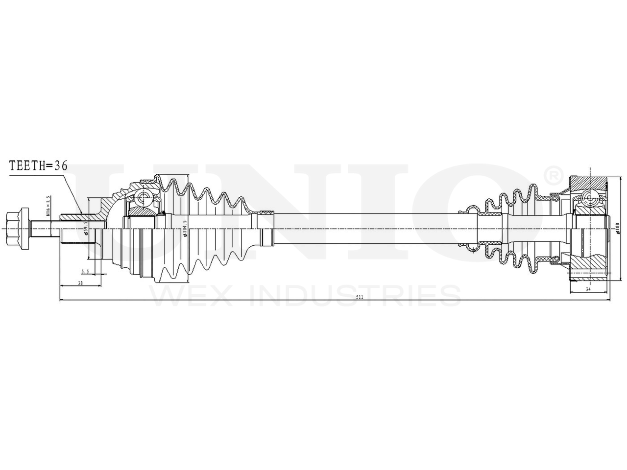 Артикул товара - CVJ-10116, Сторона установки:Передний мост слева, Внешнее зацепление со стороны колеса:36, Внутренне зубчатое соединение со стороны колеса:30, Диаметр прокладки [мм]:59.5, Длина [мм]:511, Диаметр шарнира [мм]:89, Размер резьбы:M16x1,5, EAN:4657814483411, EAN:4657814483411, Тип упаковки:коробка, Длина упаковки [мм]:605, Ширина упаковки [мм]:130, Высота упаковки [мм]:130, Вес нетто [кг]:5,85, Вес брутто [кг]:6,57
