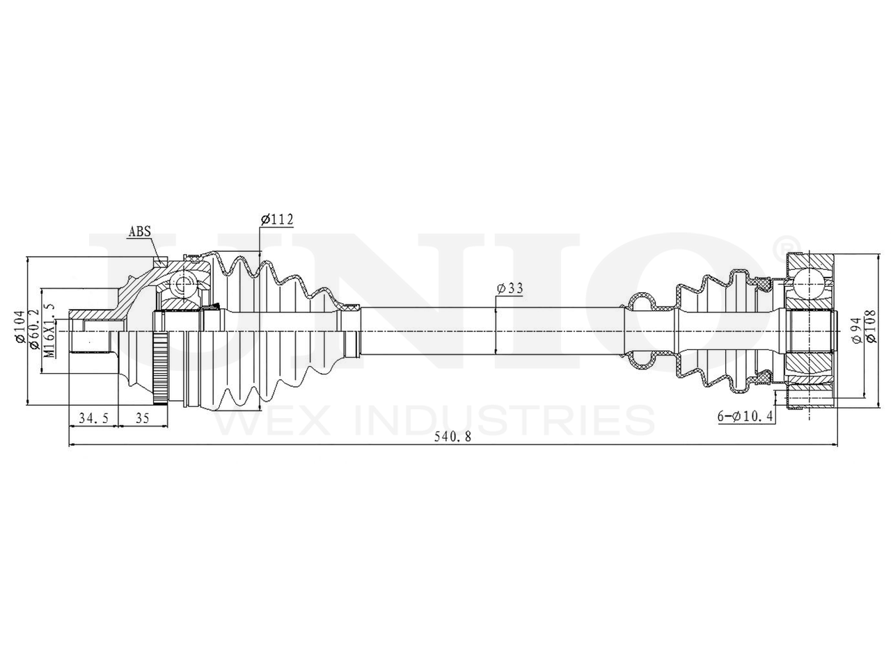 Артикул товара - CVJ-10061, Сторона установки:Передний мост, Внешнее зацепление со стороны колеса:38, Внутреннее зубчатое соединение со стороны дифференциала:28, Внутренне зубчатое соединение со стороны колеса:27, Диаметр прокладки [мм]:60.2, Число зубцов кольца ABS:48, Длина [мм]:540.8, Диаметр 2 [мм]:108, Диаметр шарнира [мм]:98, Кольцо-ABS, диам. [мм]:104, Размер резьбы:M16x1,5, EAN:4657814482865, EAN:4657814482865, Тип упаковки:коробка, Длина упаковки [мм]:605, Ширина упаковки [мм]:130, Высота упаковки [мм]:130, Вес нетто [кг]:7,53, Вес брутто [кг]:8,25