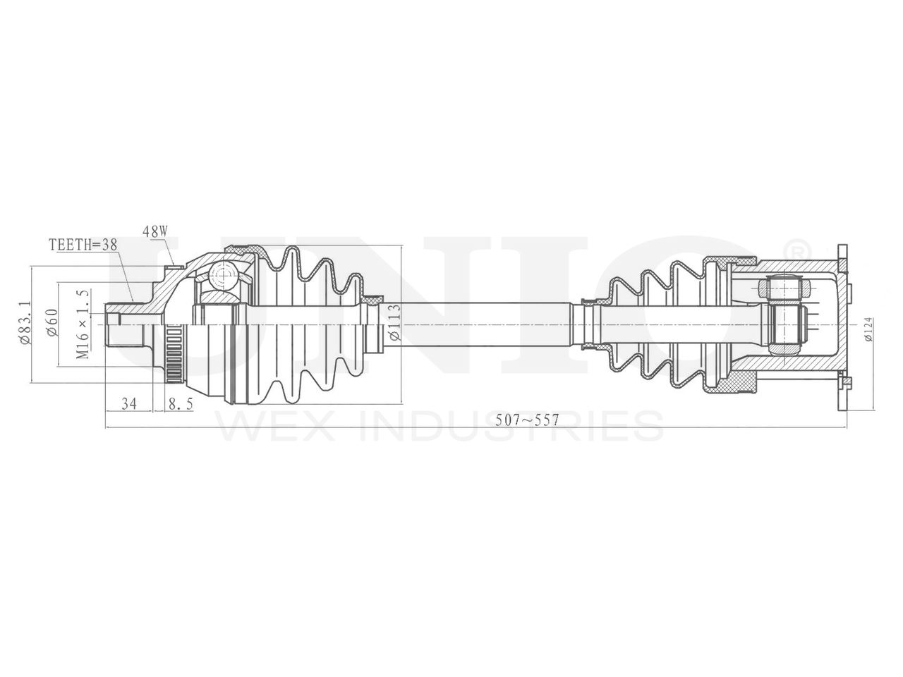 Артикул товара - CVJ-10090, Сторона установки:Передний мост, Внешнее зацепление со стороны колеса:38, Внутреннее зубчатое соединение со стороны дифференциала:34, Внутренне зубчатое соединение со стороны колеса:36, Диаметр прокладки [мм]:60, Число зубцов кольца ABS:48, Длина [мм]:507, Диаметр 2 [мм]:124, Диаметр шарнира [мм]:102, Кольцо-ABS, диам. [мм]:83.1, Размер резьбы:M16x1,5, EAN:4657814483152, EAN:4657814483152, Тип упаковки:коробка, Длина упаковки [мм]:605, Ширина упаковки [мм]:130, Высота упаковки [мм]:130, Вес нетто [кг]:7,65, Вес брутто [кг]:8,37