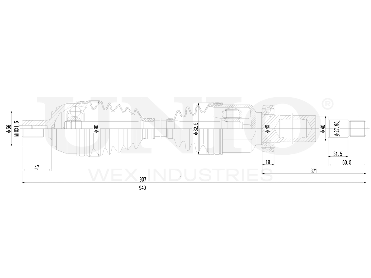 Артикул товара - CVJ-10003, Сторона установки:Передний мост справа, Внешнее зацепление со стороны колеса:36, Внешнее зацепление со стороны дифференциала:23, Диаметр прокладки [мм]:56, Длина [мм]:907, Диаметр 2 [мм]:76, Диаметр шарнира [мм]:81.4, Диаметр ролика трипоида [мм]:32, Размер резьбы:M10x1,5, EAN:4657814482285, EAN:4657814482285, Тип упаковки:коробка, Длина упаковки [мм]:1000, Ширина упаковки [мм]:125, Высота упаковки [мм]:125, Вес нетто [кг]:7,35, Вес брутто [кг]:7,75