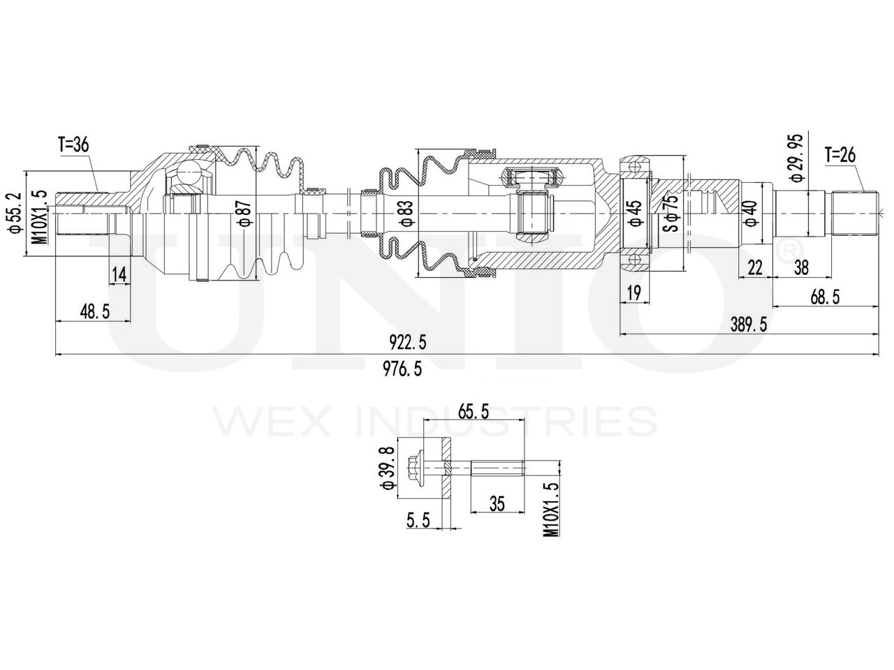 Артикул товара - CVJ-10005, Сторона установки:Передний мост справа, Внешнее зацепление со стороны колеса:36, Внешнее зацепление со стороны дифференциала:26, Диаметр прокладки [мм]:55.2, Длина [мм]:922.5, Диаметр 2 [мм]:78.8, Диаметр шарнира [мм]:80, Диаметр ролика трипоида [мм]:39.8, Размер резьбы:M10x1,5, EAN:4657814482308, EAN:4657814482308, Тип упаковки:коробка, Длина упаковки [мм]:1015, Ширина упаковки [мм]:120, Высота упаковки [мм]:120, Вес нетто [кг]:8,68, Вес брутто [кг]:9,56