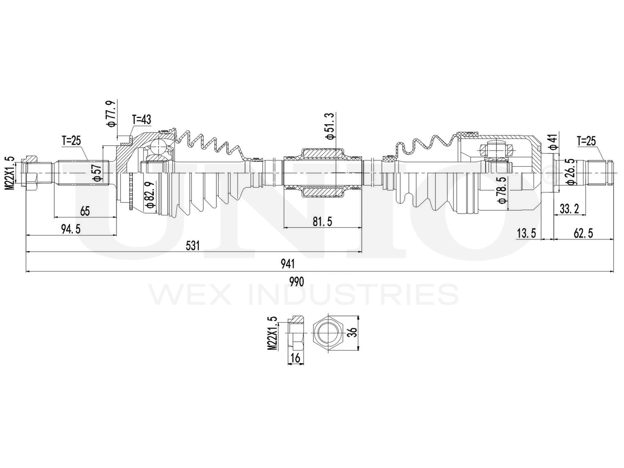 Артикул товара - CVJ-10034, Сторона установки:Передний мост справа, Внешнее зацепление со стороны колеса:25, Внешнее зацепление со стороны дифференциала:25, Диаметр прокладки [мм]:57, Число зубцов кольца ABS:43, Длина [мм]:941, Диаметр 2 [мм]:78.5, Диаметр шарнира [мм]:82.9, Кольцо-ABS, диам. [мм]:77.9, Диаметр ролика трипоида [мм]:34.4, Размер резьбы:M22x1,5, EAN:4657814482599, EAN:4657814482599, Тип упаковки:коробка, Длина упаковки [мм]:1015, Ширина упаковки [мм]:120, Высота упаковки [мм]:120, Вес нетто [кг]:7,03, Вес брутто [кг]:7,91