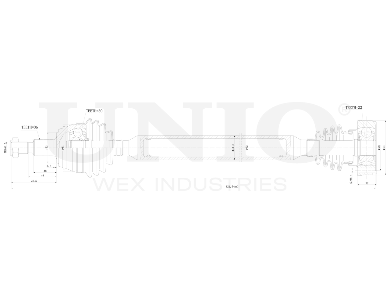 Артикул товара - CVJ-10047, Сторона установки:Передний мост справа, Внешнее зацепление со стороны колеса:36, Внутреннее зубчатое соединение со стороны дифференциала:33, Внутренне зубчатое соединение со стороны колеса:30, Диаметр прокладки [мм]:53, Длина [мм]:821.5, Диаметр 2 [мм]:94, Диаметр шарнира [мм]:81, Размер резьбы:M20x1,5, EAN:4657814482728, EAN:4657814482728, Тип упаковки:коробка, Длина упаковки [мм]:930, Ширина упаковки [мм]:125, Высота упаковки [мм]:125, Вес нетто [кг]:6,55, Вес брутто [кг]:6,95