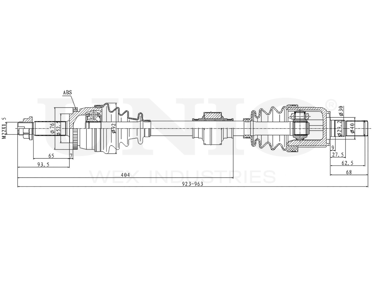 Артикул товара - CVJ-10081, Сторона установки:Передний мост справа, Внешнее зацепление со стороны колеса:25, Внешнее зацепление со стороны дифференциала:27, Внутреннее зубчатое соединение со стороны дифференциала:22, Внутренне зубчатое соединение со стороны колеса:22, Диаметр прокладки [мм]:52.5, Число зубцов кольца ABS:48, Длина [мм]:923, Диаметр 2 [мм]:77, Диаметр шарнира [мм]:76.5, Кольцо-ABS, диам. [мм]:76, Размер резьбы:M22x1,5, EAN:4657814483060, EAN:4657814483060, Тип упаковки:коробка, Длина упаковки [мм]:1015, Ширина упаковки [мм]:120, Высота упаковки [мм]:120, Вес нетто [кг]:6,38, Вес брутто [кг]:7,26
