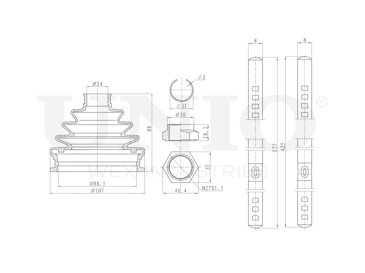 Артикул товара - DUC-30065K, Сторона установки:Передний мост,Со стороны колеса, Внутренний диаметр 1 [мм]:24, Внутренний диаметр 2 [мм]:88.5, Высота [мм]:88, Материал пыльника:Неопрен (хлоропреновый каучук), EAN:4657814489529, EAN:4657814489529, Тип упаковки:коробка, Длина упаковки [мм]:120, Ширина упаковки [мм]:120, Высота упаковки [мм]:120, Вес нетто [кг]:0,23, Вес брутто [кг]:0,38