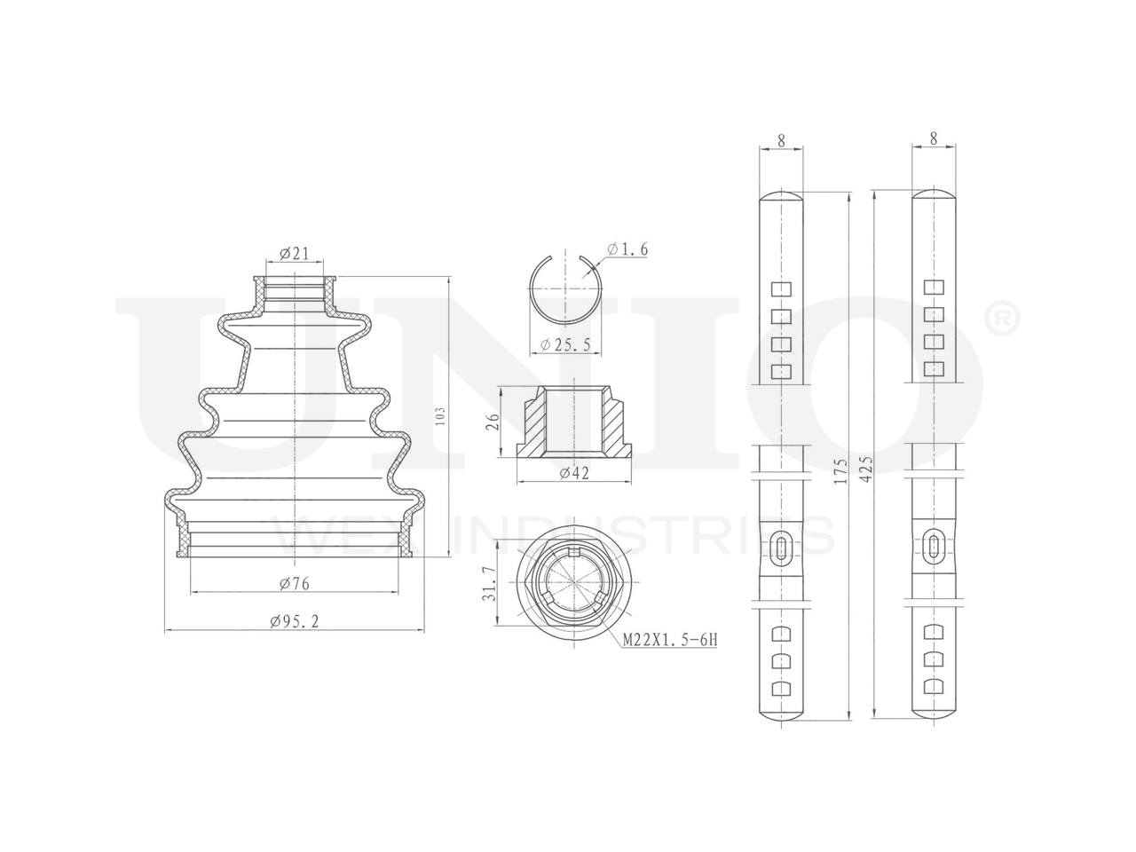 Артикул товара - DUC-30081K, Сторона установки:Передний мост,Со стороны колеса, Внутренний диаметр 1 [мм]:21, Внутренний диаметр 2 [мм]:76, Высота [мм]:103, Материал пыльника:Неопрен (хлоропреновый каучук), EAN:4657814489680, EAN:4657814489680, Тип упаковки:коробка, Длина упаковки [мм]:120, Ширина упаковки [мм]:120, Высота упаковки [мм]:120, Вес нетто [кг]:0,16, Вес брутто [кг]:0,32