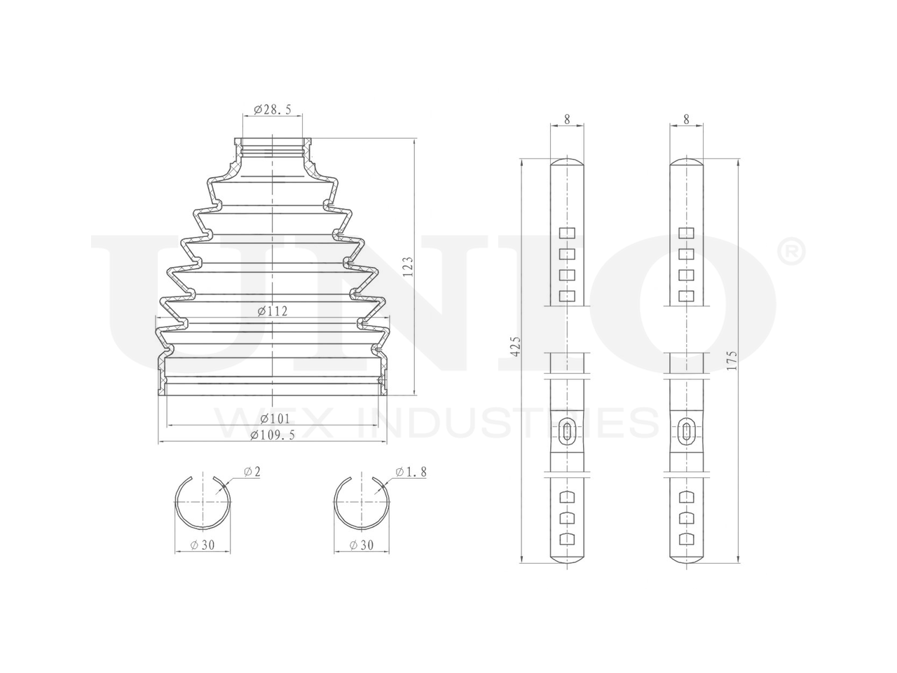 Артикул товара - DUC-30097K, Сторона установки:Передний мост,Со стороны колеса, Внутренний диаметр 1 [мм]:28.5, Внутренний диаметр 2 [мм]:101, Высота [мм]:123, Материал пыльника:Неопрен (хлоропреновый каучук), EAN:4657814489840, EAN:4657814489840, Тип упаковки:коробка, Длина упаковки [мм]:120, Ширина упаковки [мм]:120, Высота упаковки [мм]:120, Вес нетто [кг]:0,17, Вес брутто [кг]:0,33