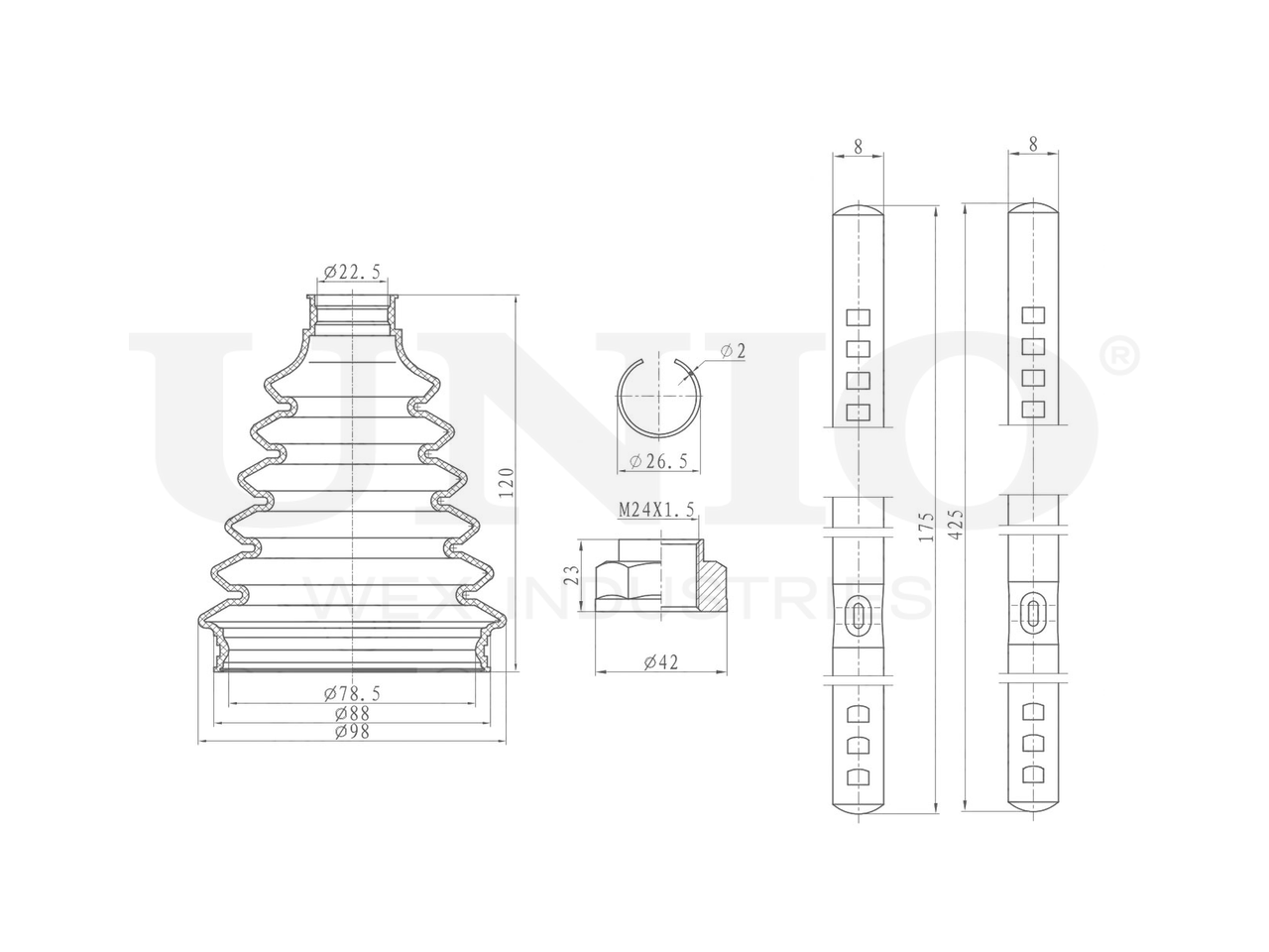 Артикул товара - DUC-30123K, Сторона установки:Передний мост,Со стороны колеса, Внутренний диаметр 1 [мм]:22.5, Внутренний диаметр 2 [мм]:78.5, Высота [мм]:120, Материал пыльника:Неопрен (хлоропреновый каучук), EAN:4657815040118, EAN:4657815040118, Тип упаковки:коробка, Длина упаковки [мм]:120, Ширина упаковки [мм]:120, Высота упаковки [мм]:120, Вес нетто [кг]:0,24, Вес брутто [кг]:0,39