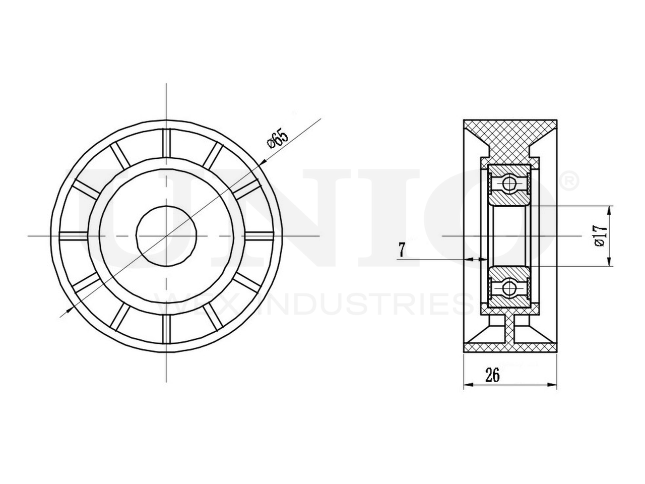 Артикул товара - TNS-10067, Внутренний диаметр [мм]:17, Наружный диаметр [мм]:65, Ширина [мм]:26, EAN:4657815044338, EAN:4657815044338, Тип упаковки:коробка, Длина упаковки [мм]:80, Ширина упаковки [мм]:80, Высота упаковки [мм]:35, Вес нетто [кг]:0,16, Вес брутто [кг]:0,21