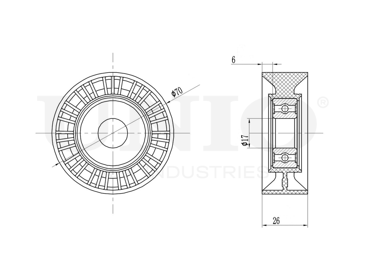 Артикул товара - TNS-10189, Внутренний диаметр [мм]:17, Наружный диаметр [мм]:70, Ширина [мм]:26, EAN:4657815045557, EAN:4657815045557, Тип упаковки:коробка, Длина упаковки [мм]:80, Ширина упаковки [мм]:80, Высота упаковки [мм]:35, Вес нетто [кг]:0,12, Вес брутто [кг]:0,17