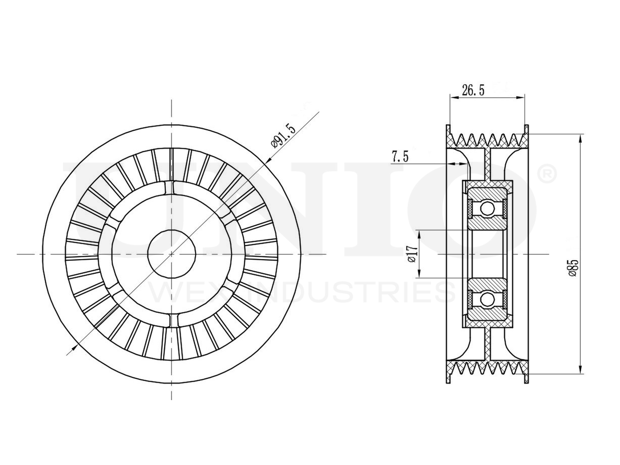 Артикул товара - TNS-10255, Внутренний диаметр [мм]:17, Наружный диаметр [мм]:85, Ширина [мм]:29, Количество ребер:7, EAN:4657815046219, EAN:4657815046219, Тип упаковки:коробка, Длина упаковки [мм]:92, Ширина упаковки [мм]:92, Высота упаковки [мм]:55, Вес нетто [кг]:0,17, Вес брутто [кг]:0,22