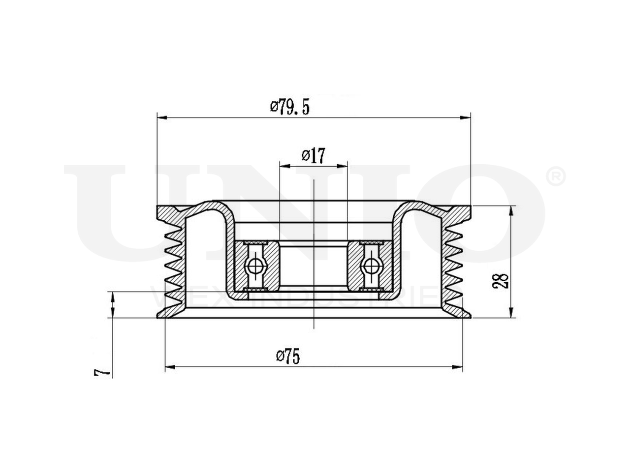 Артикул товара - TNS-10264, Внутренний диаметр [мм]:17, Наружный диаметр [мм]:75, Ширина [мм]:28.5, Количество ребер:6, EAN:4657815046301, EAN:4657815046301, Тип упаковки:коробка, Длина упаковки [мм]:92, Ширина упаковки [мм]:92, Высота упаковки [мм]:55, Вес нетто [кг]:0,32, Вес брутто [кг]:0,37