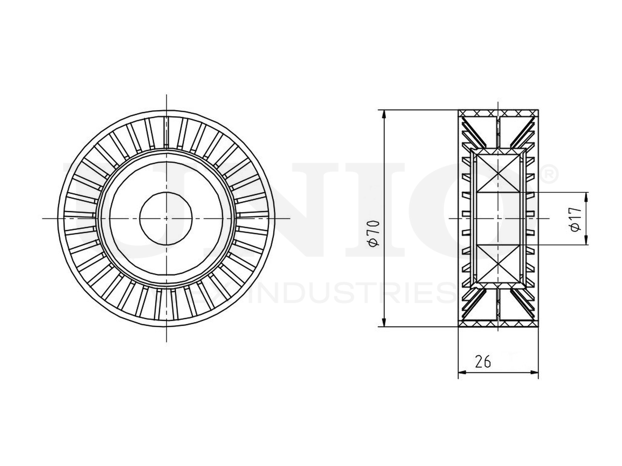 Артикул товара - TNS-10138, Внутренний диаметр [мм]:17, Наружный диаметр [мм]:70, Ширина [мм]:26, EAN:4657815045045, EAN:4657815045045, Тип упаковки:коробка, Длина упаковки [мм]:95, Ширина упаковки [мм]:52, Высота упаковки [мм]:95, Вес нетто [кг]:0,12, Вес брутто [кг]:0,15