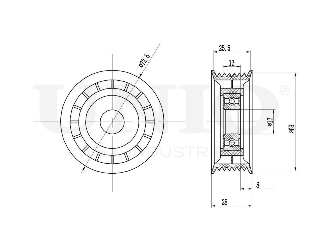 Артикул товара - TNS-10148, Внутренний диаметр [мм]:17, Наружный диаметр [мм]:69, Ширина [мм]:28, Количество ребер:7, EAN:4657815045144, EAN:4657815045144, Тип упаковки:коробка, Длина упаковки [мм]:80, Ширина упаковки [мм]:80, Высота упаковки [мм]:35, Вес нетто [кг]:0,19, Вес брутто [кг]:0,24