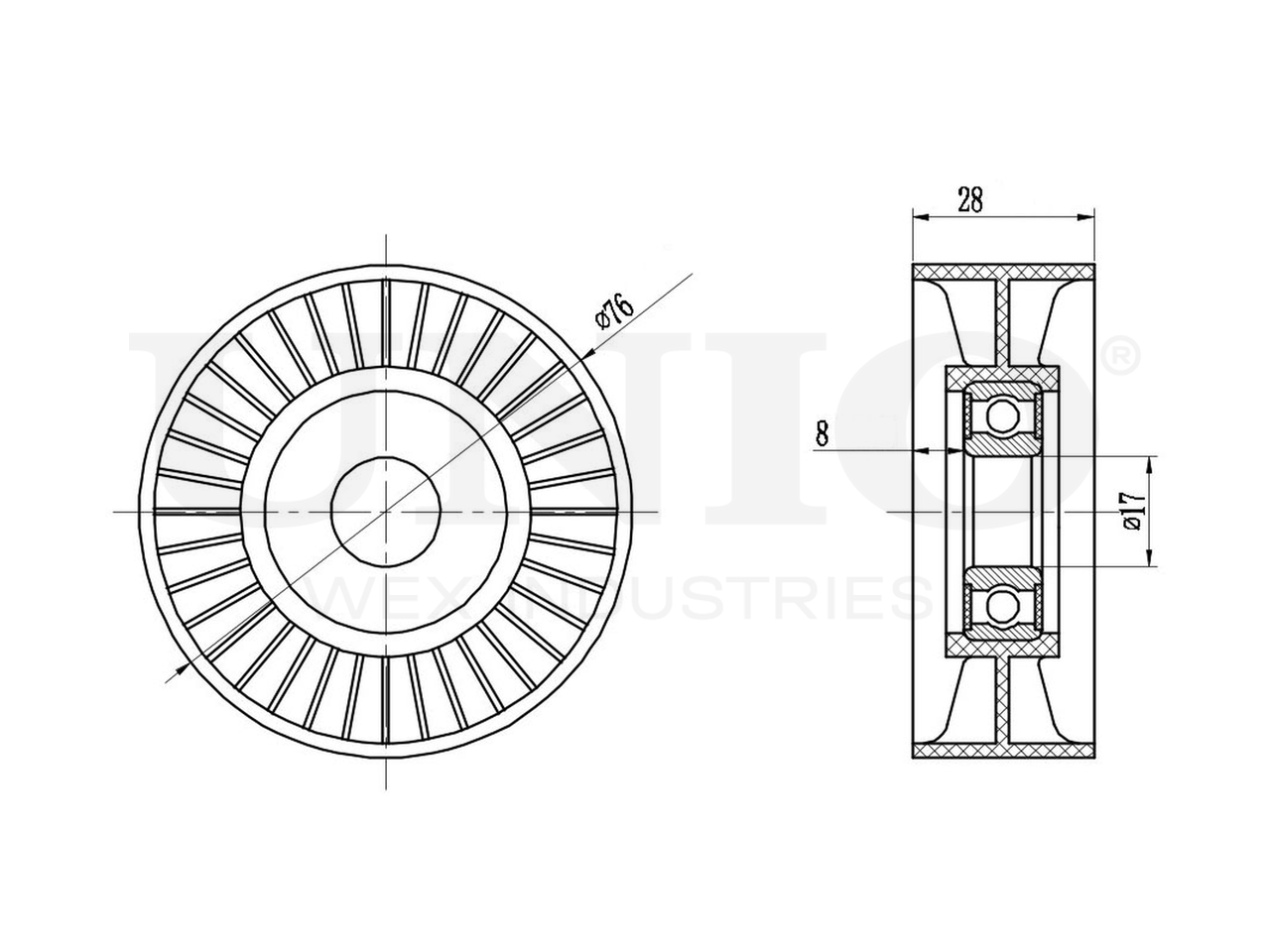 Артикул товара - TNS-10175, Внутренний диаметр [мм]:17, Наружный диаметр [мм]:76, Ширина [мм]:28, EAN:4657815045410, EAN:4657815045410, Тип упаковки:коробка, Длина упаковки [мм]:70, Ширина упаковки [мм]:70, Высота упаковки [мм]:40, Вес нетто [кг]:0,09, Вес брутто [кг]:0,14