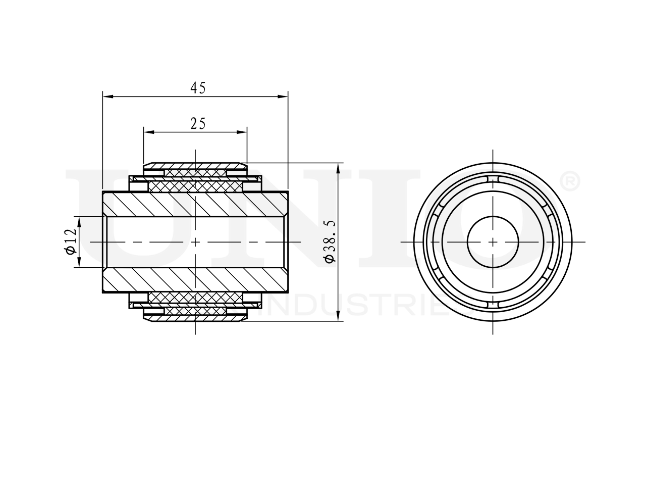 Артикул товара - RMP-20713, Сторона установки:Задний мост, Наружный диаметр [мм]:38.5, Внутренний диаметр [мм]:12, Длина 1 [мм]:45, Длина 2 [мм]:25, EAN:4657844652917, EAN:4657844652917, Тип упаковки:пакет, Длина упаковки [мм]:100, Ширина упаковки [мм]:140, Высота упаковки [мм]:50, Вес нетто [кг]:0,091, Вес брутто [кг]:0,121