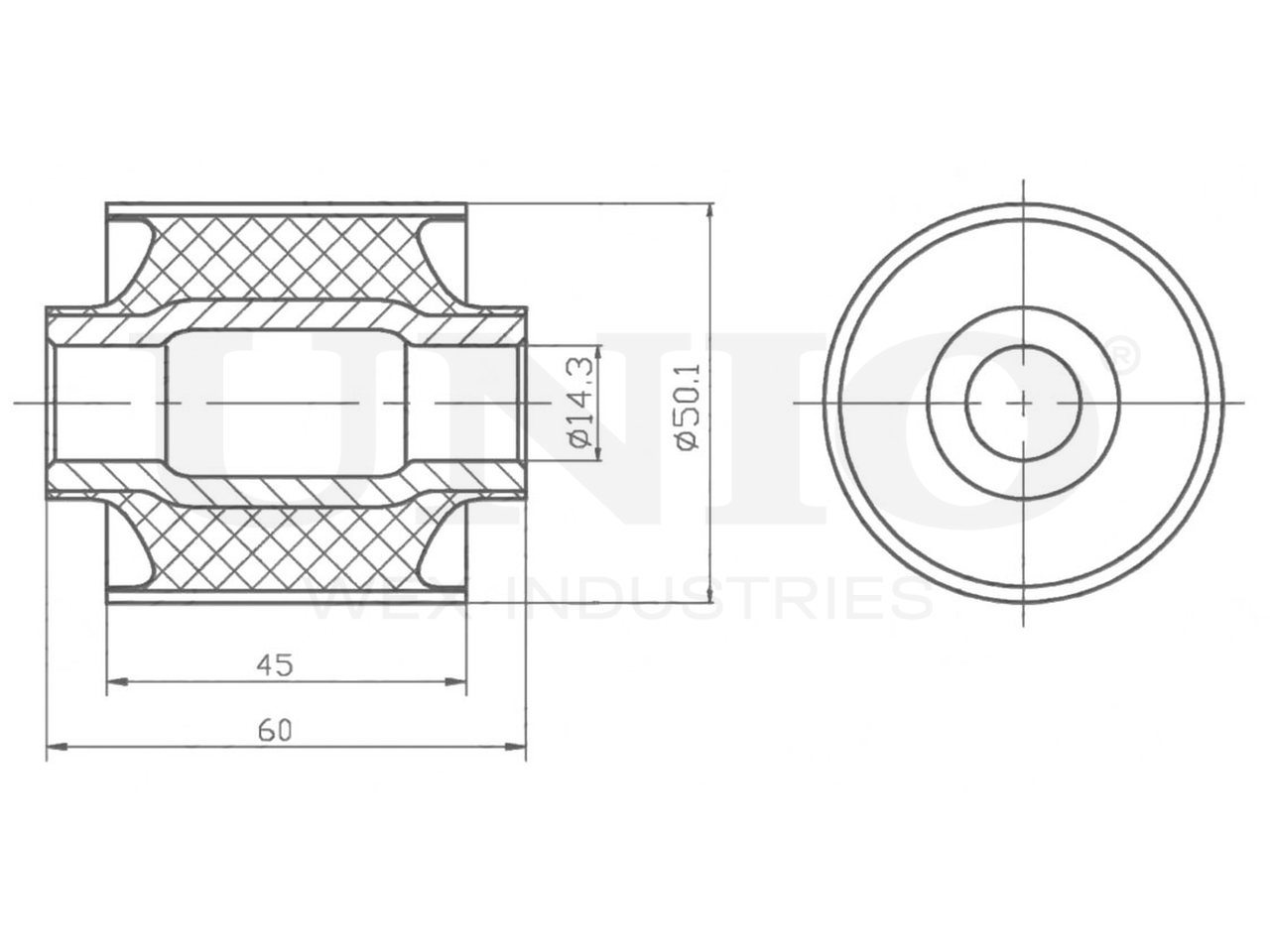 Артикул товара - RMP-20435, Сторона установки:Задняя ось, слева/справа,Сверху, Наружный диаметр [мм]:50.1, Внутренний диаметр [мм]:14.3, Длина 1 [мм]:60, Длина 2 [мм]:45, EAN:4657814480359, EAN:4657814480359, Тип упаковки:пакет, Длина упаковки [мм]:160, Ширина упаковки [мм]:200, Высота упаковки [мм]:50, Вес нетто [кг]:0,28, Вес брутто [кг]:0,28