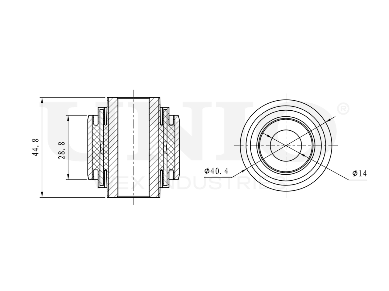 Артикул товара - RMP-20727, Сторона установки:Задний мост, Наружный диаметр [мм]:40.4, Внутренний диаметр [мм]:14, Длина 1 [мм]:44.8, Длина 2 [мм]:28.8, EAN:4657844653051, EAN:4657844653051, Тип упаковки:пакет, Длина упаковки [мм]:100, Ширина упаковки [мм]:140, Высота упаковки [мм]:50, Вес нетто [кг]:0,156, Вес брутто [кг]:0,186