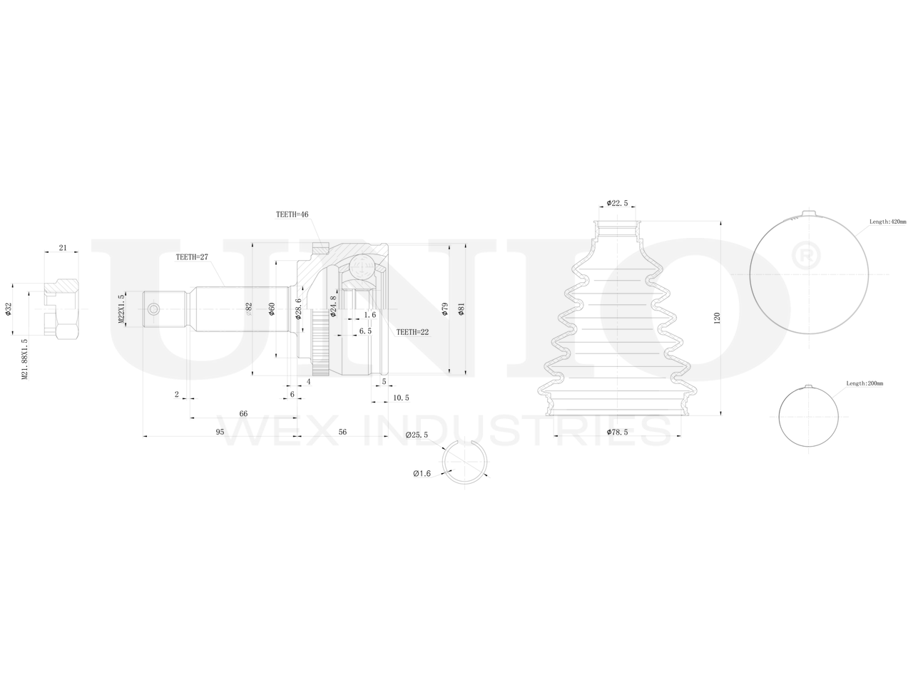 Артикул товара - CVJ-20016, Сторона установки:Передний мост, Внешнее зацепление со стороны колеса:27, Внутренне зубчатое соединение со стороны колеса:22, Диаметр прокладки [мм]:60, Число зубцов кольца ABS:46, Длина [мм]:151, Диаметр шарнира [мм]:81, Кольцо-ABS, диам. [мм]:82, Размер резьбы:M22x1,5, EAN:4657814483770, EAN:4657814483770, Тип упаковки:коробка, Длина упаковки [мм]:115, Ширина упаковки [мм]:115, Высота упаковки [мм]:200, Вес нетто [кг]:1,82, Вес брутто [кг]:2,02