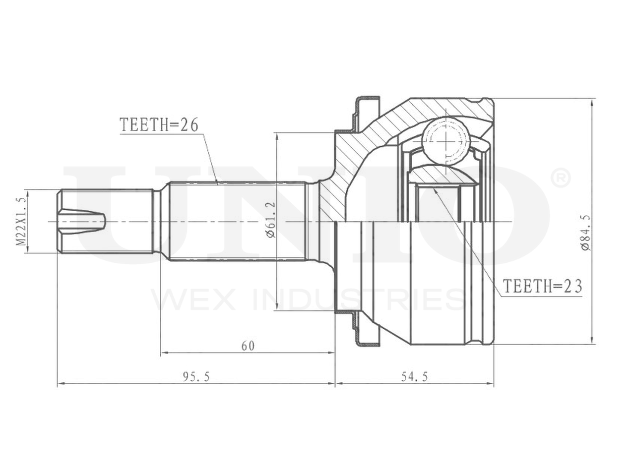 Артикул товара - CVJ-20021, Сторона установки:Передний мост, Внешнее зацепление со стороны колеса:26, Внутренне зубчатое соединение со стороны колеса:23, Диаметр прокладки [мм]:61.2, Длина [мм]:150, Диаметр шарнира [мм]:84.5, Размер резьбы:M22x1,5, EAN:4657814483824, EAN:4657814483824, Тип упаковки:коробка, Длина упаковки [мм]:115, Ширина упаковки [мм]:115, Высота упаковки [мм]:200, Вес нетто [кг]:2, Вес брутто [кг]:2,2