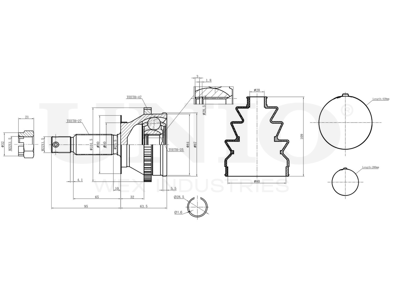Артикул товара - CVJ-20028, Сторона установки:Передний мост, Внешнее зацепление со стороны колеса:27, Внутренне зубчатое соединение со стороны колеса:25, Диаметр прокладки [мм]:60, Число зубцов кольца ABS:47, Длина [мм]:158.5, Диаметр шарнира [мм]:87, Кольцо-ABS, диам. [мм]:101.5, Размер резьбы:M22x1,5, EAN:4657814483893, EAN:4657814483893, Тип упаковки:коробка, Длина упаковки [мм]:115, Ширина упаковки [мм]:115, Высота упаковки [мм]:200, Вес нетто [кг]:2,24, Вес брутто [кг]:2,44