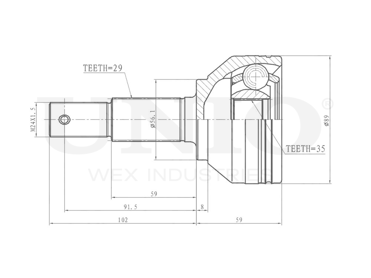 Артикул товара - CVJ-20031, Сторона установки:Передний мост, Внешнее зацепление со стороны колеса:29, Внутренне зубчатое соединение со стороны колеса:35, Диаметр прокладки [мм]:56.1, Длина [мм]:161, Диаметр шарнира [мм]:89, Размер резьбы:M24x1,5, EAN:4657814483923, EAN:4657814483923, Тип упаковки:коробка, Длина упаковки [мм]:115, Ширина упаковки [мм]:115, Высота упаковки [мм]:200, Вес нетто [кг]:2,31, Вес брутто [кг]:2,51
