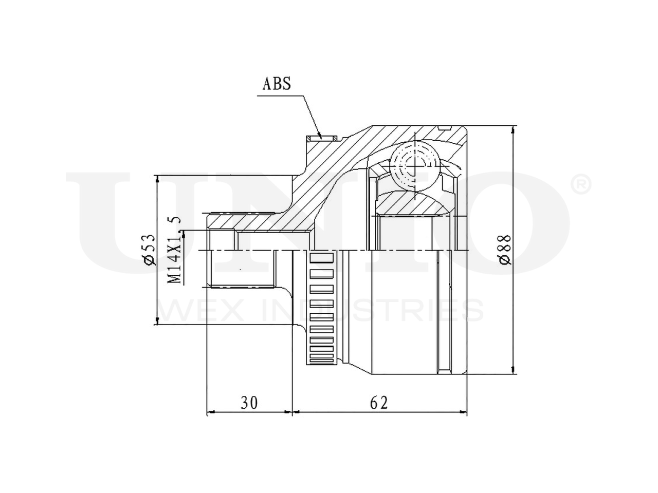 Артикул товара - CVJ-20038, Сторона установки:Передний мост, Внешнее зацепление со стороны колеса:33, Внутренне зубчатое соединение со стороны колеса:30, Диаметр прокладки [мм]:53, Число зубцов кольца ABS:45, Длина [мм]:92, Диаметр шарнира [мм]:88, Кольцо-ABS, диам. [мм]:80.7, Размер резьбы:M14x1,5, EAN:4657814483992, EAN:4657814483992, Тип упаковки:коробка, Длина упаковки [мм]:115, Ширина упаковки [мм]:115, Высота упаковки [мм]:200, Вес нетто [кг]:2,22, Вес брутто [кг]:2,42