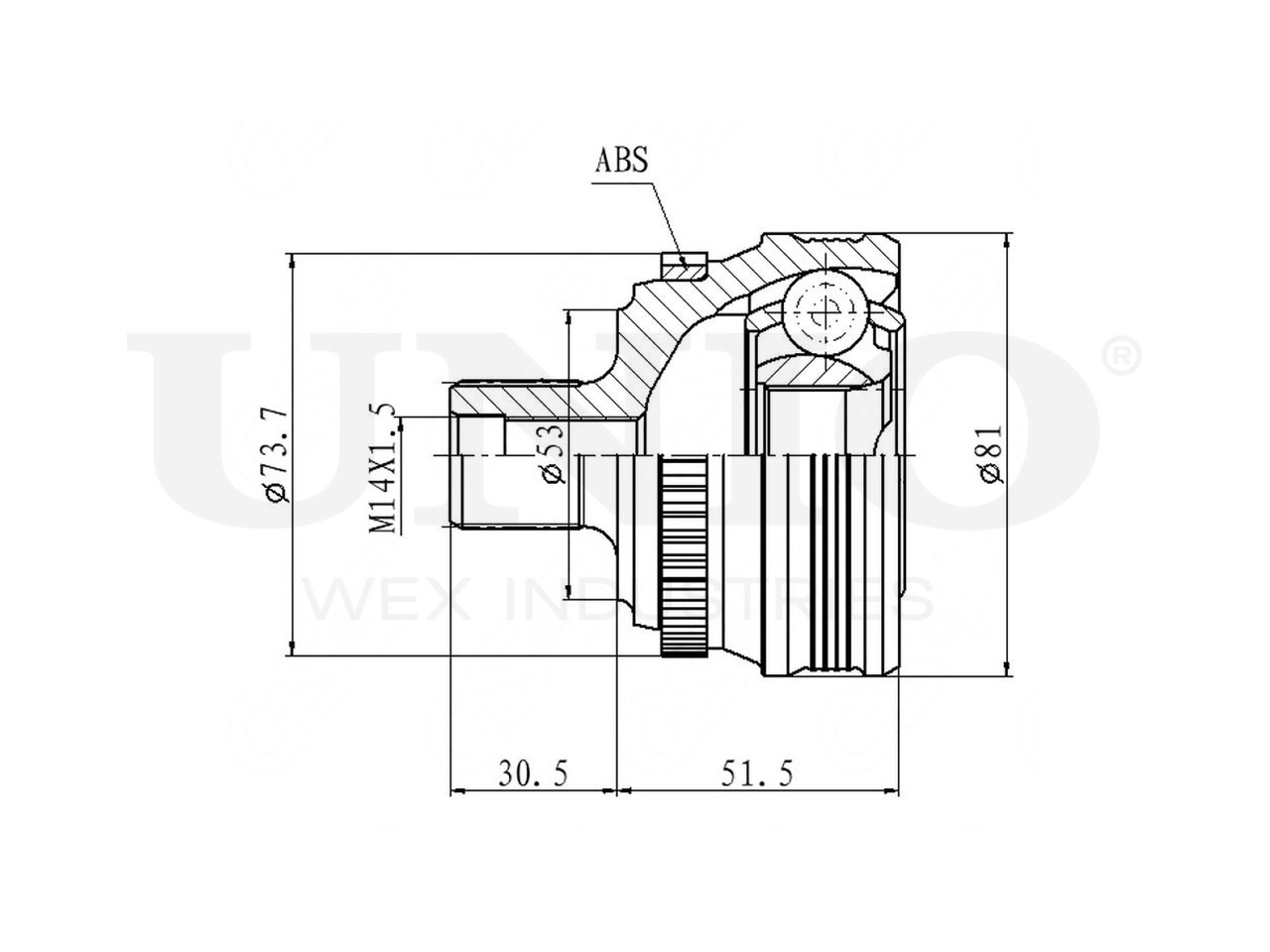 Артикул товара - CVJ-20065, Сторона установки:Передний мост, Внешнее зацепление со стороны колеса:33, Внутренне зубчатое соединение со стороны колеса:30, Диаметр прокладки [мм]:53, Число зубцов кольца ABS:45, Длина [мм]:82, Диаметр шарнира [мм]:81, Кольцо-ABS, диам. [мм]:73.7, Размер резьбы:M14x1,5, EAN:4657814484265, EAN:4657814484265, Тип упаковки:коробка, Длина упаковки [мм]:115, Ширина упаковки [мм]:115, Высота упаковки [мм]:200, Вес нетто [кг]:1,66, Вес брутто [кг]:1,86