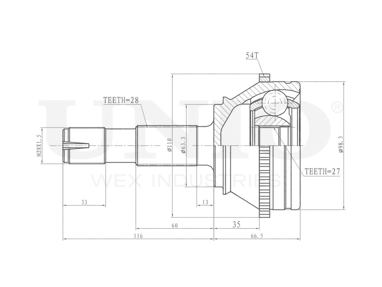 Артикул товара - CVJ-20070, Сторона установки:Передний мост, Внешнее зацепление со стороны колеса:28, Внутренне зубчатое соединение со стороны колеса:27, Диаметр прокладки [мм]:63.3, Число зубцов кольца ABS:54, Длина [мм]:182.5, Диаметр шарнира [мм]:98.3, Кольцо-ABS, диам. [мм]:110, Размер резьбы:M28x1,5, EAN:4657814484319, EAN:4657814484319, Тип упаковки:коробка, Длина упаковки [мм]:125, Ширина упаковки [мм]:125, Высота упаковки [мм]:260, Вес нетто [кг]:3,07, Вес брутто [кг]:3,31
