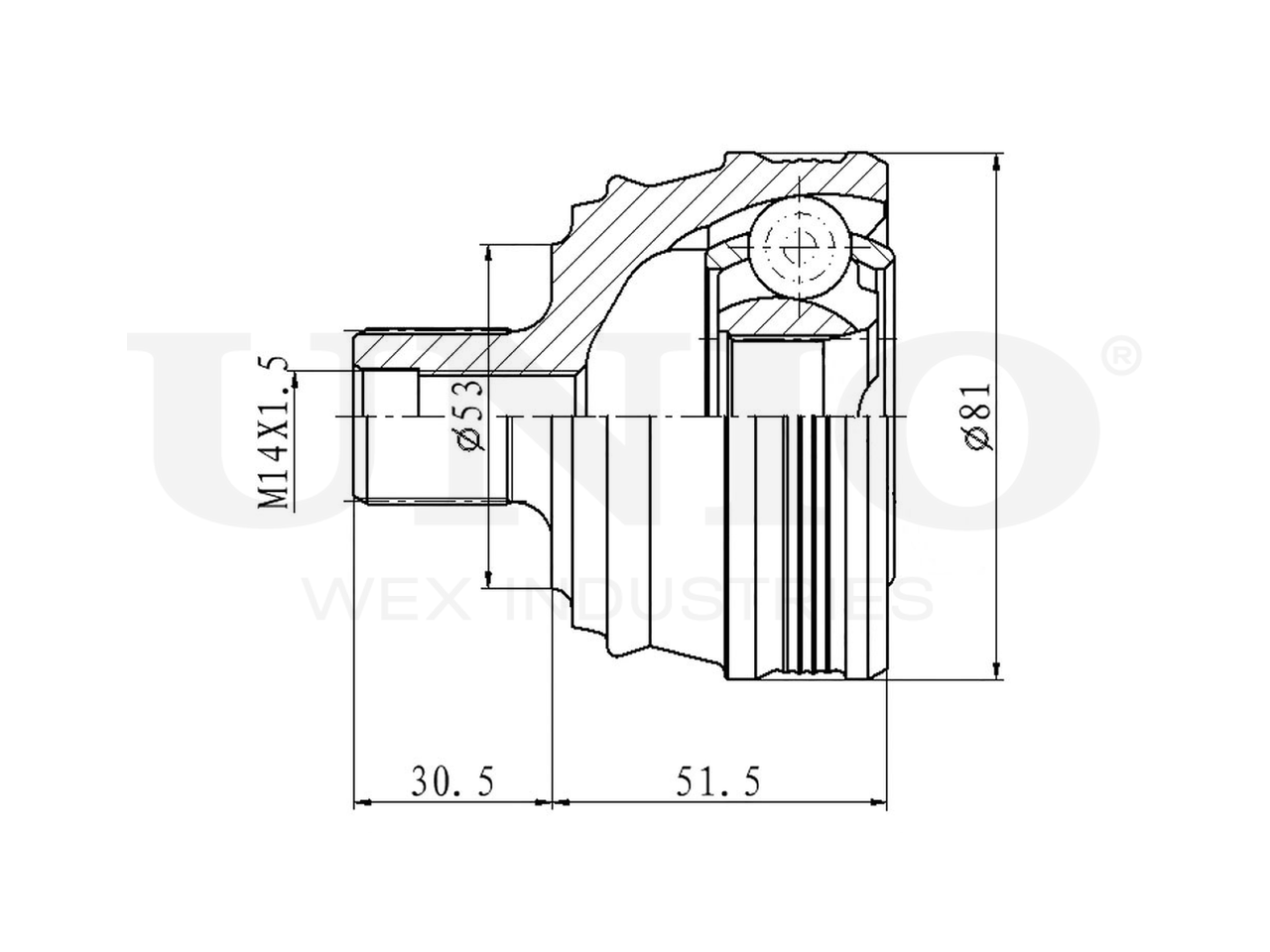 Артикул товара - CVJ-20076, Сторона установки:Передний мост, Внешнее зацепление со стороны колеса:33, Внутренне зубчатое соединение со стороны колеса:30, Диаметр прокладки [мм]:53, Длина [мм]:82, Диаметр шарнира [мм]:81, Размер резьбы:M14x1,5, EAN:4657814484371, EAN:4657814484371, Тип упаковки:коробка, Длина упаковки [мм]:115, Ширина упаковки [мм]:115, Высота упаковки [мм]:200, Вес нетто [кг]:1,65, Вес брутто [кг]:1,85