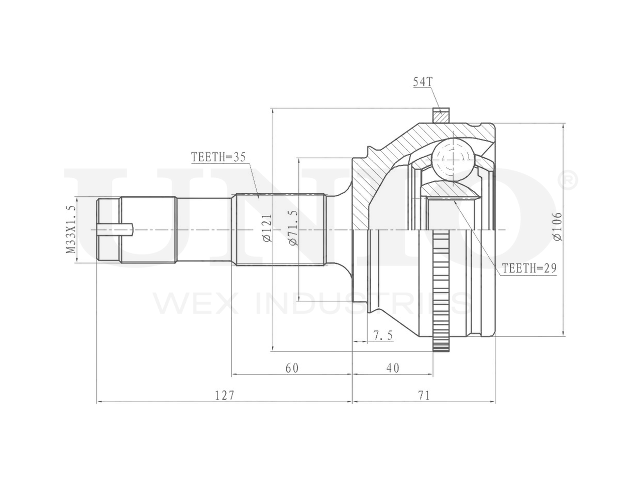 Артикул товара - CVJ-20077, Сторона установки:Передний мост, Внешнее зацепление со стороны колеса:35, Внутренне зубчатое соединение со стороны колеса:29, Диаметр прокладки [мм]:71.5, Число зубцов кольца ABS:54, Длина [мм]:198, Диаметр шарнира [мм]:106, Кольцо-ABS, диам. [мм]:121, Размер резьбы:M33x1,5, EAN:4657814484388, EAN:4657814484388, Тип упаковки:коробка, Длина упаковки [мм]:125, Ширина упаковки [мм]:125, Высота упаковки [мм]:260, Вес нетто [кг]:4,36, Вес брутто [кг]:4,6