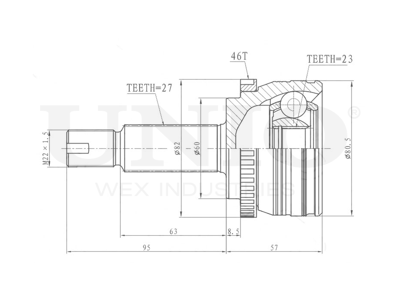 Артикул товара - CVJ-20083, Сторона установки:Передний мост справа, Внешнее зацепление со стороны колеса:27, Внутренне зубчатое соединение со стороны колеса:23, Диаметр прокладки [мм]:60, Число зубцов кольца ABS:46, Длина [мм]:152, Диаметр шарнира [мм]:80.5, Кольцо-ABS, диам. [мм]:82, Размер резьбы:M22x1,5, EAN:4657814484449, EAN:4657814484449, Тип упаковки:коробка, Длина упаковки [мм]:115, Ширина упаковки [мм]:115, Высота упаковки [мм]:200, Вес нетто [кг]:1,95, Вес брутто [кг]:2,15