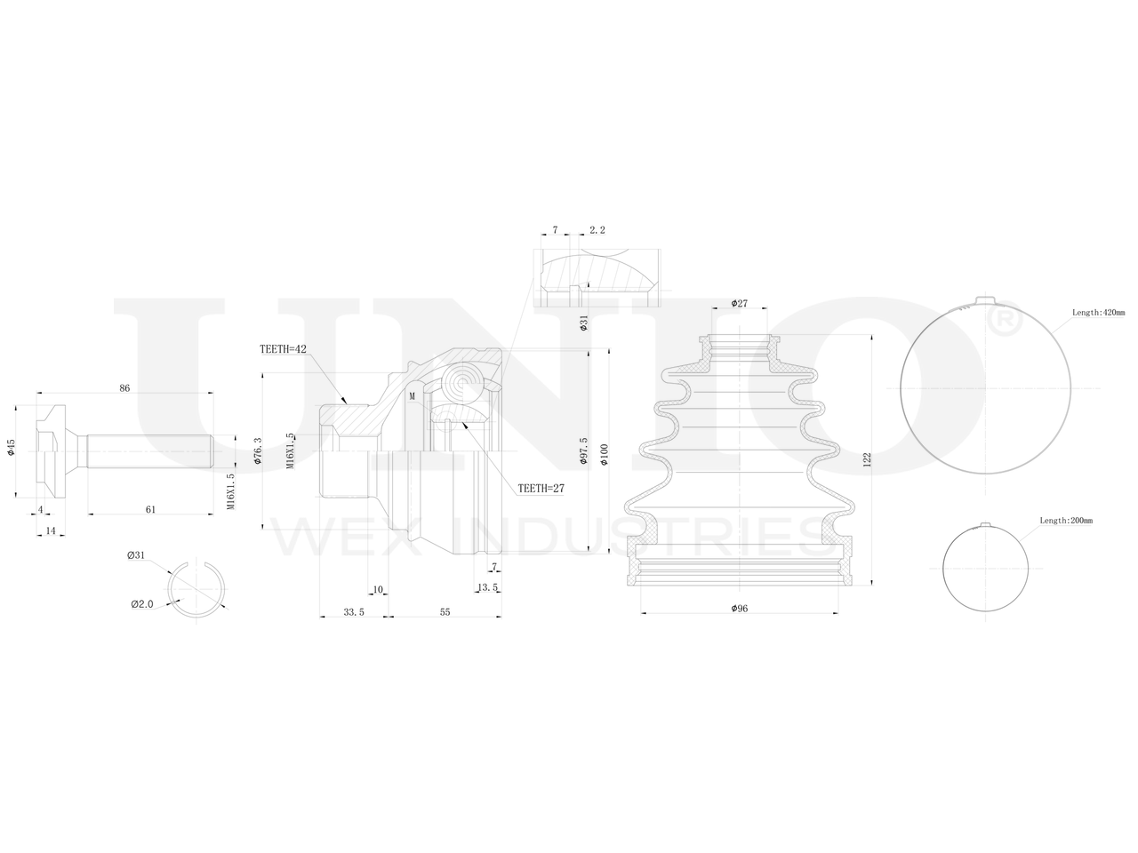 Артикул товара - CVJ-20090, Сторона установки:Передний мост, Внешнее зацепление со стороны колеса:42, Внутренне зубчатое соединение со стороны колеса:27, Диаметр прокладки [мм]:76.3, Длина [мм]:88.5, Диаметр шарнира [мм]:100, Размер резьбы:M16x1,5, EAN:4657814484517, EAN:4657814484517, Тип упаковки:коробка, Длина упаковки [мм]:115, Ширина упаковки [мм]:115, Высота упаковки [мм]:200, Вес нетто [кг]:2,57, Вес брутто [кг]:2,77