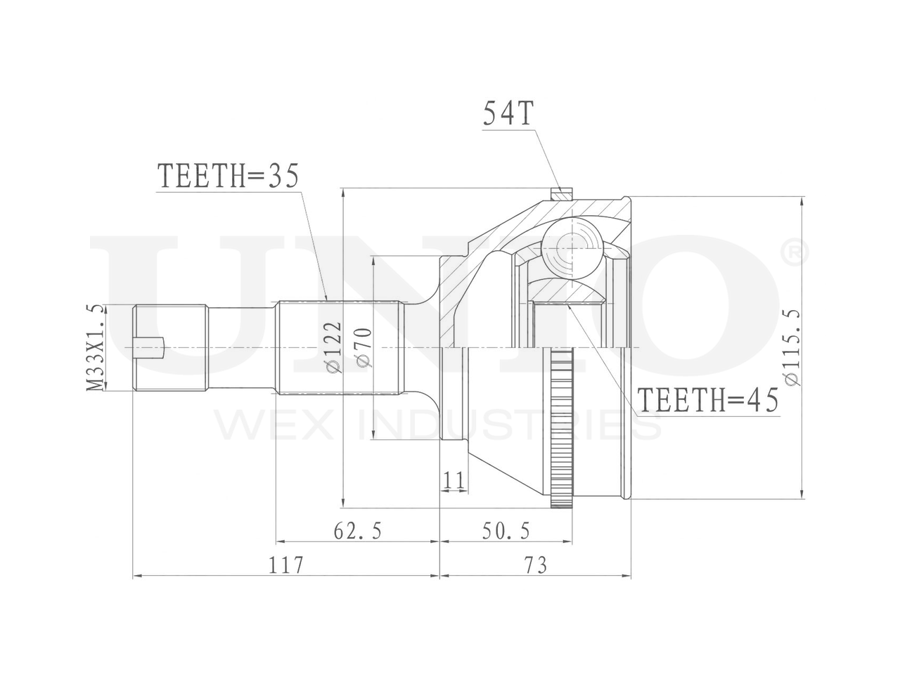 Артикул товара - CVJ-20105, Сторона установки:Передний мост, Внешнее зацепление со стороны колеса:35, Внутренне зубчатое соединение со стороны колеса:45, Диаметр прокладки [мм]:70, Число зубцов кольца ABS:54, Длина [мм]:190, Диаметр шарнира [мм]:115.5, Кольцо-ABS, диам. [мм]:122, Размер резьбы:M33x1,5, EAN:4657814484661, EAN:4657814484661, Тип упаковки:коробка, Длина упаковки [мм]:125, Ширина упаковки [мм]:125, Высота упаковки [мм]:260, Вес нетто [кг]:4,09, Вес брутто [кг]:4,33