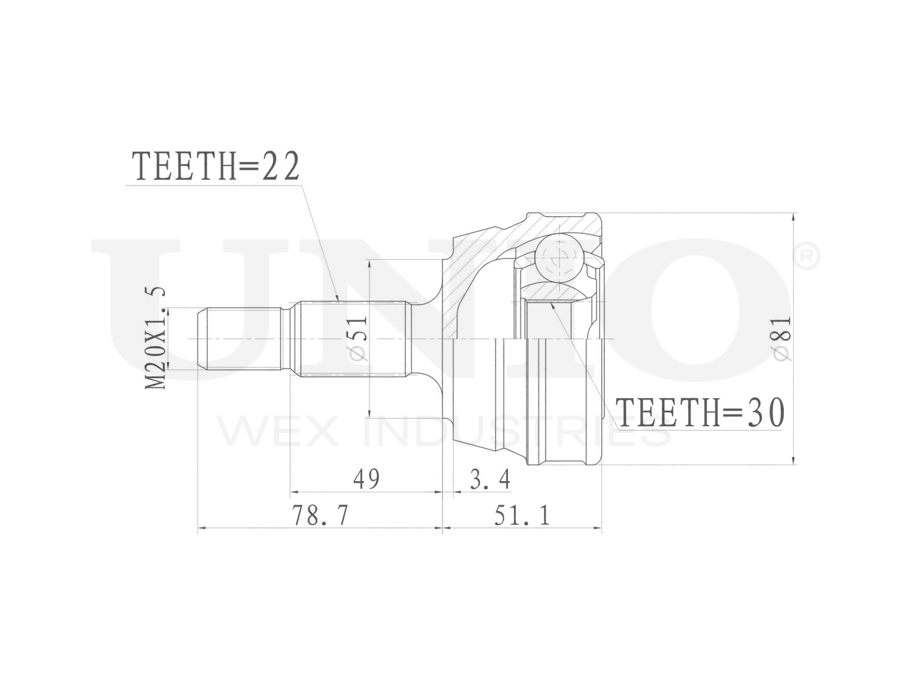 Артикул товара - CVJ-20120, Сторона установки:Передний мост, Внешнее зацепление со стороны колеса:22, Внутренне зубчатое соединение со стороны колеса:30, Диаметр прокладки [мм]:51, Длина [мм]:129.8, Диаметр шарнира [мм]:81, Размер резьбы:M20x1,5, EAN:4657814484814, EAN:4657814484814, Тип упаковки:коробка, Длина упаковки [мм]:115, Ширина упаковки [мм]:115, Высота упаковки [мм]:200, Вес нетто [кг]:1,6, Вес брутто [кг]:1,8