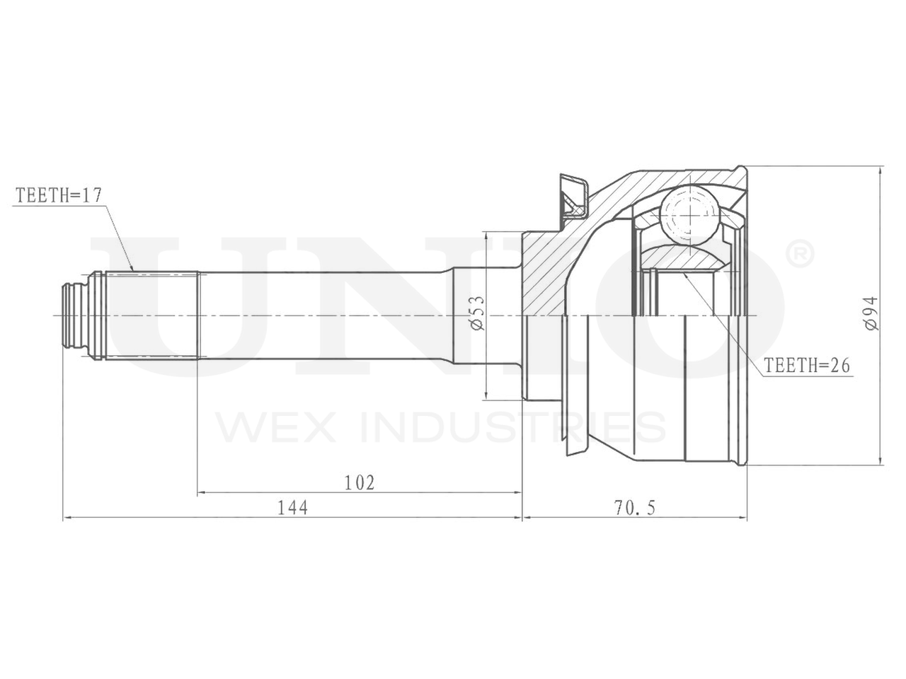 Артикул товара - CVJ-20145, Сторона установки:Передний мост, Внешнее зацепление со стороны колеса:17, Внутренне зубчатое соединение со стороны колеса:26, Диаметр прокладки [мм]:53, Длина [мм]:214.5, Диаметр шарнира [мм]:94, Размер резьбы:M8, EAN:4657814485064, EAN:4657814485064, Тип упаковки:коробка, Длина упаковки [мм]:125, Ширина упаковки [мм]:125, Высота упаковки [мм]:260, Вес нетто [кг]:2,87, Вес брутто [кг]:3,11