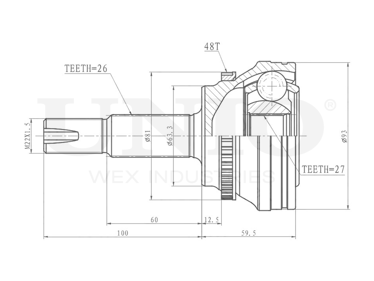 Артикул товара - CVJ-20160, Сторона установки:Передний мост, Внешнее зацепление со стороны колеса:26, Внутренне зубчатое соединение со стороны колеса:27, Диаметр прокладки [мм]:63.3, Число зубцов кольца ABS:48, Длина [мм]:159.5, Диаметр шарнира [мм]:93, Кольцо-ABS, диам. [мм]:81, Размер резьбы:M22x1,5, EAN:4657814485217, EAN:4657814485217, Тип упаковки:коробка, Длина упаковки [мм]:115, Ширина упаковки [мм]:115, Высота упаковки [мм]:200, Вес нетто [кг]:2,32, Вес брутто [кг]:2,52