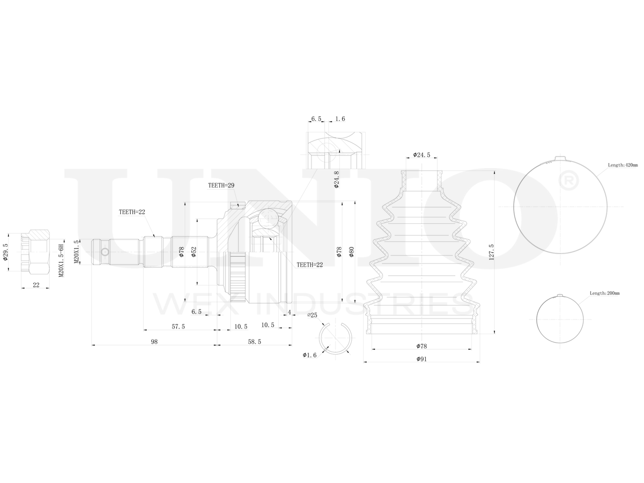 Артикул товара - CVJ-20191, Сторона установки:Передний мост, Внешнее зацепление со стороны колеса:22, Внутренне зубчатое соединение со стороны колеса:22, Диаметр прокладки [мм]:52, Число зубцов кольца ABS:29, Длина [мм]:156.5, Диаметр шарнира [мм]:80, Кольцо-ABS, диам. [мм]:78, Размер резьбы:M20x1,5, EAN:4657814485521, EAN:4657814485521, Тип упаковки:коробка, Длина упаковки [мм]:115, Ширина упаковки [мм]:115, Высота упаковки [мм]:200, Вес нетто [кг]:2,27, Вес брутто [кг]:2,47