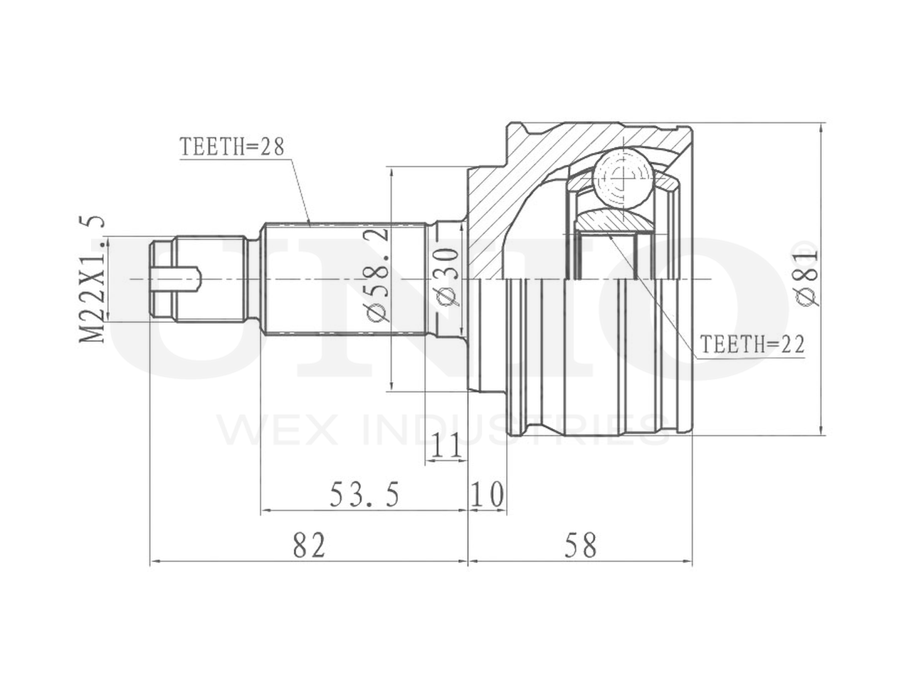 Артикул товара - CVJ-20211, Сторона установки:Передний мост, Внешнее зацепление со стороны колеса:28, Внутренне зубчатое соединение со стороны колеса:22, Диаметр прокладки [мм]:58.2, Длина [мм]:140, Диаметр шарнира [мм]:81, Размер резьбы:M22x1,5, EAN:4657814485712, EAN:4657814485712, Тип упаковки:коробка, Длина упаковки [мм]:115, Ширина упаковки [мм]:115, Высота упаковки [мм]:200, Вес нетто [кг]:1,98, Вес брутто [кг]:2,18