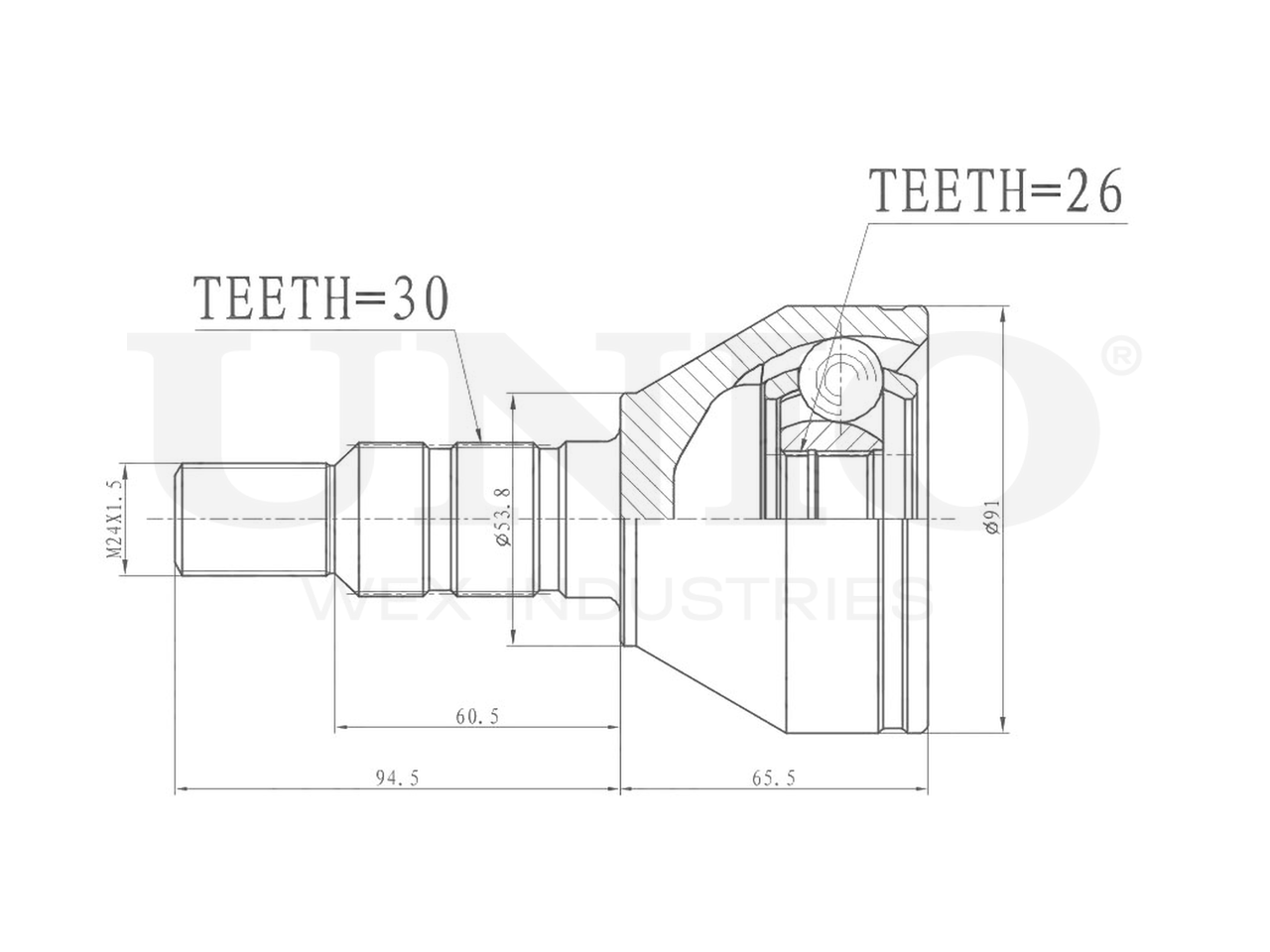 Артикул товара - CVJ-20231, Сторона установки:Передний мост, Внешнее зацепление со стороны колеса:30, Внутренне зубчатое соединение со стороны колеса:26, Диаметр прокладки [мм]:53.8, Длина [мм]:160, Диаметр шарнира [мм]:91, Размер резьбы:M24x1,5, EAN:4657814485910, EAN:4657814485910, Тип упаковки:коробка, Длина упаковки [мм]:115, Ширина упаковки [мм]:115, Высота упаковки [мм]:200, Вес нетто [кг]:2,48, Вес брутто [кг]:2,68