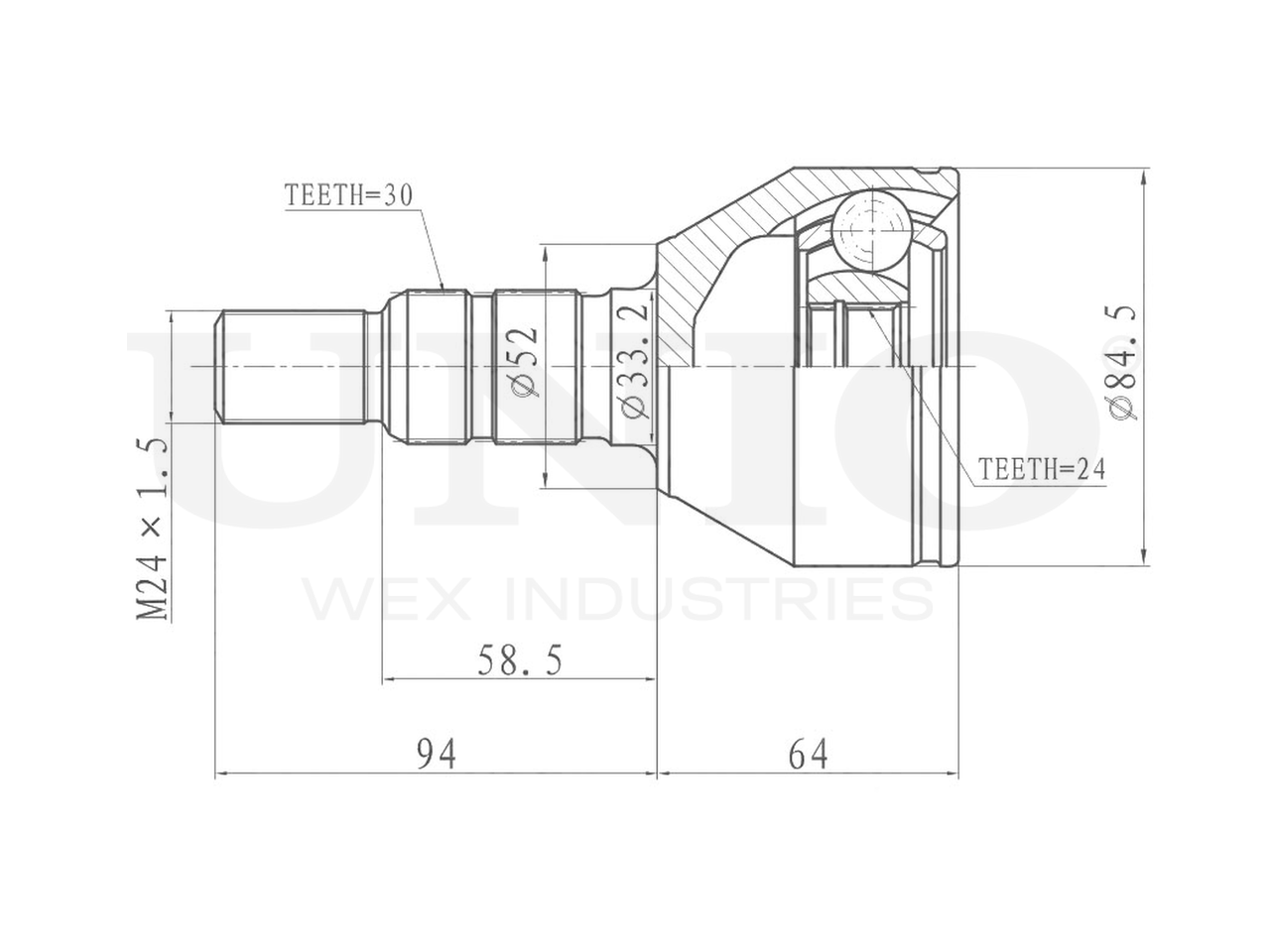 Артикул товара - CVJ-20234, Сторона установки:Передний мост, Внешнее зацепление со стороны колеса:30, Внутренне зубчатое соединение со стороны колеса:24, Диаметр прокладки [мм]:52, Длина [мм]:158, Диаметр шарнира [мм]:84.5, Размер резьбы:M24x1,5, EAN:4657814485941, EAN:4657814485941, Тип упаковки:коробка, Длина упаковки [мм]:115, Ширина упаковки [мм]:115, Высота упаковки [мм]:200, Вес нетто [кг]:2,15, Вес брутто [кг]:2,35