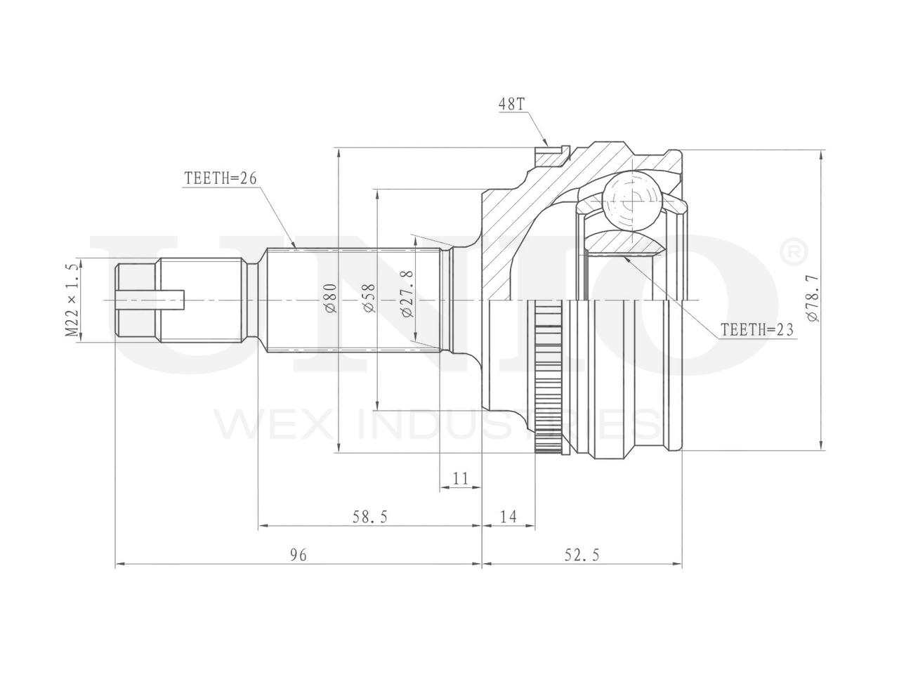 Артикул товара - CVJ-20241, Сторона установки:Передний мост,Со стороны колеса, Внешнее зацепление со стороны колеса:26, Внутренне зубчатое соединение со стороны колеса:23, Диаметр прокладки [мм]:58, Число зубцов кольца ABS:48, Длина [мм]:148.5, Диаметр шарнира [мм]:83, Кольцо-ABS, диам. [мм]:81, Размер резьбы:M22x1,5, EAN:4657814486016, EAN:4657814486016, Тип упаковки:коробка, Длина упаковки [мм]:115, Ширина упаковки [мм]:115, Высота упаковки [мм]:200, Вес нетто [кг]:1,78, Вес брутто [кг]:1,98