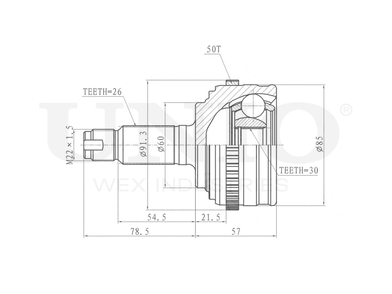 Артикул товара - CVJ-20257, Сторона установки:Передний мост, Внешнее зацепление со стороны колеса:26, Внутренне зубчатое соединение со стороны колеса:30, Диаметр прокладки [мм]:60, Число зубцов кольца ABS:50, Длина [мм]:135.5, Диаметр шарнира [мм]:85, Кольцо-ABS, диам. [мм]:91.3, Размер резьбы:M22X1,5, EAN:4657814486177, EAN:4657814486177, Тип упаковки:коробка, Длина упаковки [мм]:115, Ширина упаковки [мм]:115, Высота упаковки [мм]:200, Вес нетто [кг]:2,19, Вес брутто [кг]:2,39